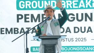 KAB BANDUNG – Pemkab Bandung melalui Dinas Pekerjaan Umum dan Tata Ruang (DPUTR) melaksanakan Groundbreaking Pembangunan Jembatan Cijeruk yang beberapa bulan lalu sempat ambruk dan viral serta menjadi perhatian publik, Jum’at (22/8/2025) sore. Groundbreaking yang dilaksanakan di RW 08 Desa Bojongsari, Kecamatan Bojongsoang itu dihadiri langsung oleh Bupati Bandung Dadang Supriatna, Ketua DPRD Kabupaten Bandung Renie Rahayu Fauzie, Forkopimda, tokoh masyarakat hingga ratusan warga yang menyambut dengan antusias. “Dengan mengucap Bismillahirrahmanirrahim, Jembatan Cijeruk ini akan dibangun kembali mulai hari ini. Insya Allah nanti lebih aman, representatif dan desain arsitekturnya indah,” kata Bupati Bandung Dadang Supriatna. Bupati yang akrab disapa Kang DS itu mengatakan pembangunan kembali Jembatan Cijeruk tersebut diharapkan dapat memulihkan akses vital bagi warga di tiga kecamatan, yaitu Kecamatan Bojongsoang, Baleendah, dan Ciparay.Bupati yang akrab disapa Kang DS itu menjelaskan Jembatan Cijeruk yang baru nantinya akan memiliki panjang 60 meter dan lebar 2,7 meter. Jembatan Cijeruk memiliki peran yang sangat penting sebagai penghubung utama perekonomian warga di tiga kecamatan tersebut. Ambruknya Jembatan Cijeruk cukup menyulitkan warga, terutama dalam distribusi barang dan mobilitas warga karena harus mengambil akses yang lebih jauh dan memutar. Kang DS mengaku menyadari betul pentingnya Jembatan Cijeruk bagi ratusan ribu warga di tiga kecamatan tersebut. Menurutnya, jembatan itu sangat vital bagi masyarakat. Dengan dibangunnya kembali jembatan ini, ia berharap dapat kembali memulihkan akses perekonomian warga, bahkan lebih meningkat. “Oleh karena itu, saya mengambil langkah cepat dengan mengalokasikan anggaran Rp 6,7 miliar dari APBD Perubahan. Kalau nunggu pembangunan dari provinsi takutnya lama, kasihan masyarakat,” ungkap Kang DS seraya disambut gemuruh tepuk tangan ratusan warga yang hadir. Jembatan yang membelah Sungai Citarum ini menurutnya, tidak hanya berfungsi sebagai penghubung antar wilayah, tetapi juga akan menjadi ikon baru dan destinasi wisata yang dapat meningkatkan pendapatan masyarakat sekitar. Dengan desain arsitektur memukau, Kang DS berencana memberikan nama “Jembatan Hijau”, sebagai simbol komitmen terhadap pelestarian lingkungan dan keberlanjutan. “Pokoknya nanti desain arsitekturnya sangat menarik. Surprise. Jembatan ini akan jadi ikon baru dan jadi tempat wisata di kawasan ini. Nanti namanya Jembatan Hijau. Cocok buat selfi-selfi,” ujar Kang DS sambil tersenyum lebar. Pembangunan ‘Jembatan Hijau’ sebagai pengganti Jembatan Cijeruk ini ditargetkan rampung pada akhir tahun ini dan dapat digunakan sebelum tahun baru 2026.Orang nomor satu di Kabupaten Bandung itu berharap semua pihak termasuk masyarakat setempat dapat mengawal pembangunan ini agar berjalan lancar dan sesuai dengan rencana. “Tolong jangan ada yang mencoba menghalangi atau mengganggu, apalagi melakukan pungli. Tolong kejaksaan dan kepolisian untuk ikut mengawal pembangunan jembatan ini. Pembangunan ini adalah untuk kepentingan masyarakat,” tegasnya.