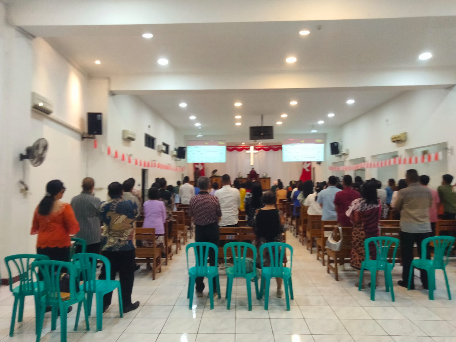 Kegiatan ibadah yang diikuti sekitar 100 jemaat berjalan dengan penuh khidmat, lancar, dan damai. Jemaat mengikuti rangkaian kebaktian dengan tertib hingga selesai tanpa kendala.