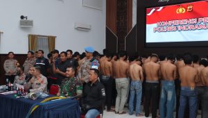 Kabid Humas Polda Jabar Kombes Pol. Hendra Rochmawan S.I.K., M.H mengatakan bahwa Polres Indramayu Polda Jabar bersama TNI, Kejaksaan Negeri, dan pemerintah daerah menggelar patroli gabungan untuk mengantisipasi potensi gangguan kamtibmas jelang aksi unjuk rasa di Mako Polres Indramayu, Senin (1/9/2025). Dari patroli yang berlangsung sejak siang, Polres Indramayu mengamankan 58 orang diduga kelompok anarko yang hendak memicu tindakan anarkis.Kapolres Indramayu AKBP Mochamad Fajar Gemilang menjelaskan, dari 58 orang tersebut terdiri atas 31 orang dewasa (18 bekerja, 13 belum bekerja), 25 pelajar (16 pelajar SMK, 9 pelajar SMP), serta 2 remaja di bawah umur yang bukan pelajar. “Mereka diamankan di berbagai lokasi dengan modus masuk ke rombongan unjuk rasa melalui informasi yang disebarkan lewat media sosial dan WhatsApp,” ungkap Kapolres Dari hasil penyisiran, polisi menyita sejumlah barang bukti, di antaranya 5 buah bom molotov, 6 bilah senjata tajam berbagai jenis, 1 petasan kembang api, 2 botol minuman keras, 2 kaleng cat pilox, 50 unit handphone serta 3 gulungan benang layangan.Lanjut Kapolres menjelaskan, Bom molotov ini rencananya digunakan untuk menyerang institusi, adapun benang layangan dipakai untuk menjerat petugas, sementara cat pilox untuk aksi vandalisme.Ditempat yang sama Kepala Kejaksaan Negeri Indramayu, Dr. Muhammad Fadlan, menyampaikan bahwa temuan tersebut mengarah pada dugaan tindak pidana serius. “Barang bukti senjata tajam dan bom molotov memungkinkan penerapan Undang-Undang Darurat Pasal 1 ayat 1 dan Pasal 2 ayat 1, serta pasal KUHP terkait pengrusakan,” ujarnya. Ia menegaskan koordinasi intensif terus dilakukan bersama penyidik Polres Indramayu.Sementara itu, Dandim 0616 Indramayu, Letkol Inf Yanuar Setyaga, menegaskan pihaknya bersama Forkopimda akan terus mengawal keamanan wilayah. “Kami tidak ingin ada pihak-pihak yang merusak ketenangan Indramayu. Patroli akan digencarkan setiap hari, pagi hingga malam,” tegasnya.Dalam hal ini Kapolres Indramayu menegaskan bahwa kebebasan berpendapat di muka umum dijamin undang-undang. Namun, ia mengingatkan agar aksi demokrasi dilaksanakan secara damai dan bertanggung jawab. “Jangan sampai ada pihak yang menunggangi dengan tindakan anarkis, karena justru akan merugikan kita semua,” tegas AKBP Fajar Gemilang didampingi Dandim, Kejari, Wakapolres Indramayu Kompol Tahir Muhiddin, dan Kasie Humas Polres Indramayu AKP Tarno.(Lia/Humas Polda Jabar)
