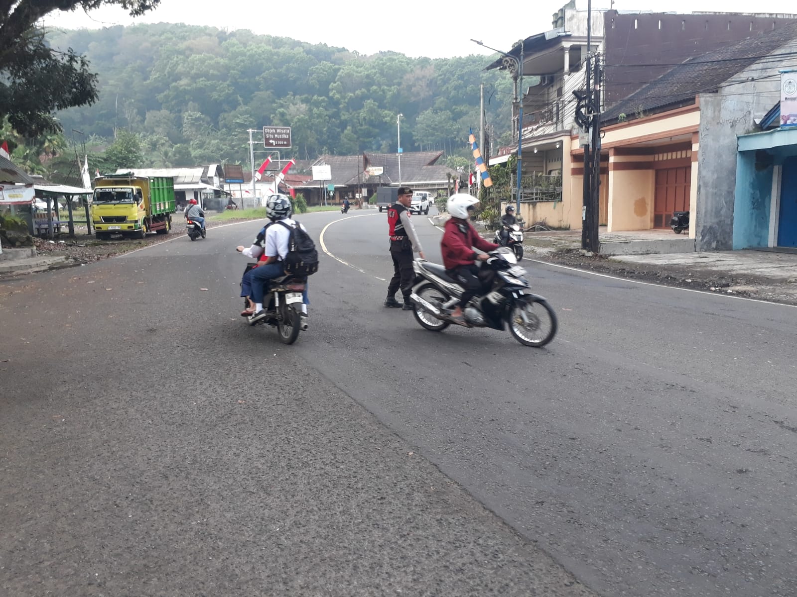 Personel Unit Pam Obvit Sat Samapta Polres Banjar melaksanakan kegiatan pengaturan (Gatur) dan pelayanan pagi di kawasan Simpang III Katapang, Selasa (2/9/2025) mulai pukul 06.20 WIB.