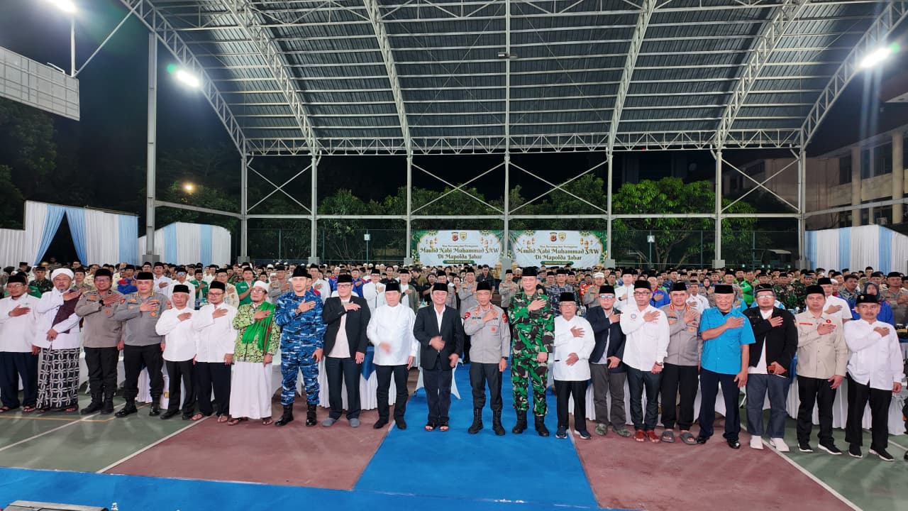 Polda Jawa Barat menggelar Doa Bersama serta peringatan Maulid Nabi Muhammad SAW 1447 H/2025 M dengan tema “Sauyunan Jaga Nagri” bertempat di Mapolda Jabar. Kegiatan yang berlangsung mulai pukul 17.30 WIB hingga selesai ini menjadi sarana mempererat silaturahmi, khususnya bersama para pengemudi ojek online (ojol), sekaligus memperkokoh persaudaraan dan rasa persatuan dalam menjaga keamanan serta ketertiban di Jawa Barat. Minggu (7/9/2025)Kapolda Jawa Barat, Irjen Pol Rudi Setiawan, S.I.K., S.H., M.H., dalam sambutannya menegaskan bahwa peringatan Maulid Nabi bukan sekadar seremonial, tetapi juga momentum penting untuk meneladani akhlak Nabi Muhammad SAW sebagai rahmatan lil ‘alamin.“Peringatan Maulid Nabi mengajarkan kita untuk menghadirkan kedamaian, keadilan, dan menegakkan amar ma’ruf nahi munkar di tengah masyarakat. Inilah wujud nyata meneladani akhlak Nabi dalam kehidupan sehari-hari,” ungkap Kapolda Jabar.Lebih lanjut, Kapolda Jabar juga mengajak seluruh unsur Forkopimda, tokoh agama, mahasiswa, hingga komunitas ojol untuk terus memperkuat sinergi, menjaga stabilitas, dan menghadirkan rasa aman serta damai di tengah masyarakat.“Mari kita bersama-sama berdoa dan berkomitmen menjaga Jawa Barat agar tetap aman, damai, penuh berkah, dan sejahtera. Inilah bentuk kebersamaan kita dalam menjaga keutuhan bangsa,” tuturnya.Acara berlangsung khidmat dengan tausiyah dari Prof. Dr. H. Sopyan Sauri, M.Pd., serta doa penutup yang dipimpin KH. Shodiq Nawawi. Kehadiran para tokoh agama, pejabat pemerintah, unsur TNI-Polri, mahasiswa, hingga komunitas ojol semakin menambah semangat persatuan dan persaudaraan dalam kegiatan ini.Sejumlah pejabat dan tokoh penting turut hadir, antara lain Sekda Provinsi Jabar Dr. Drs. Herman Suryatman, M.Si., Kaban Kesbangpol Jabar Drs. Wahyu Mijaya, S.H., M.Si., Aster Kodam III/Siliwangi Kol. Inf. Muhammad Iqbal Lubis, Ketua MUI Jabar KH. Rachmat Syafe’i, Wakil Ketua PWNU Jabar H. Dindin C. Nurdin, serta perwakilan organisasi keagamaan, mahasiswa, komunitas ojol, dan tokoh masyarakat Jawa Barat.Kebersamaan dalam peringatan Maulid Nabi Muhammad SAW ini menjadi bukti nyata bahwa semangat persatuan dan sinergi antara aparat, pemerintah, dan masyarakat adalah kunci dalam menjaga ketertiban serta kedamaian di Jawa Barat.(Lia/Humas Polda Jabar)