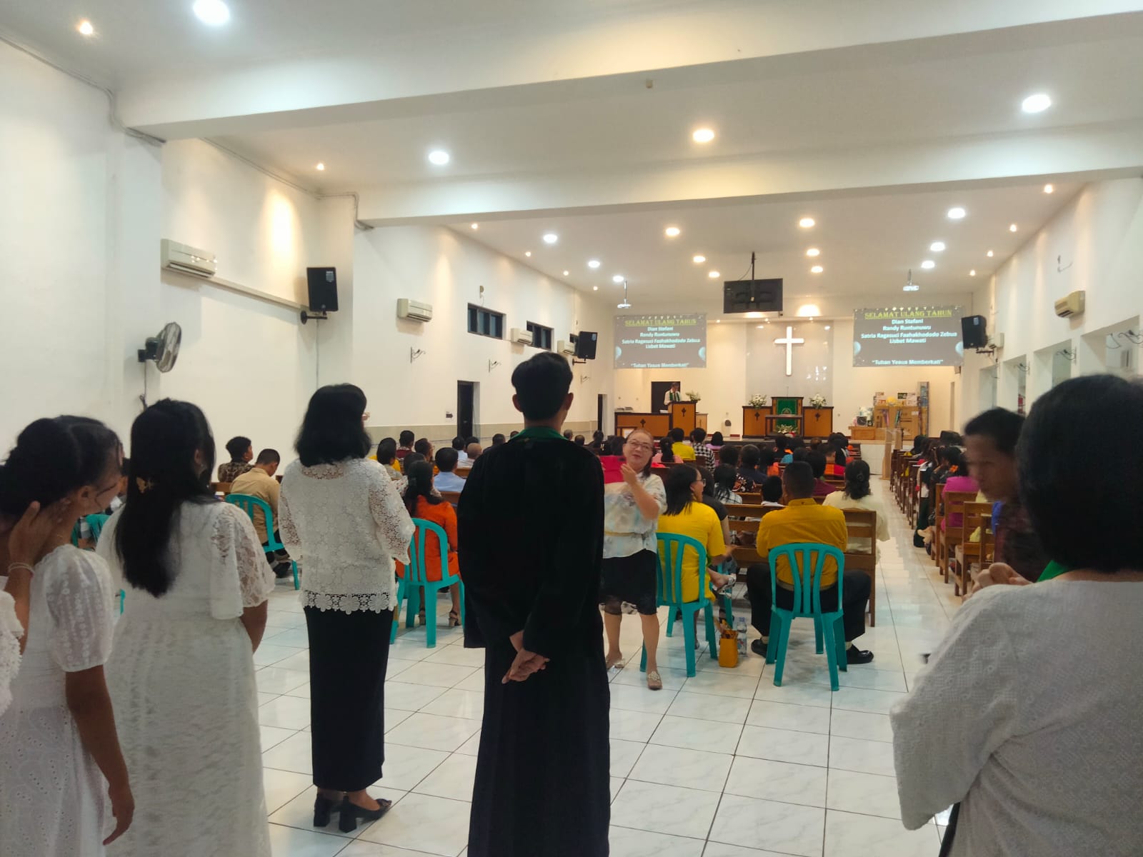 Ibadah Minggu yang dipimpin oleh Pendeta Dio Bastiawan berlangsung khidmat dengan diikuti sekitar 100 jemaat. Tema kebaktian kali ini adalah “Memperalat Kebaikan”. Para jemaat mengikuti rangkaian ibadah dengan tertib hingga selesai.