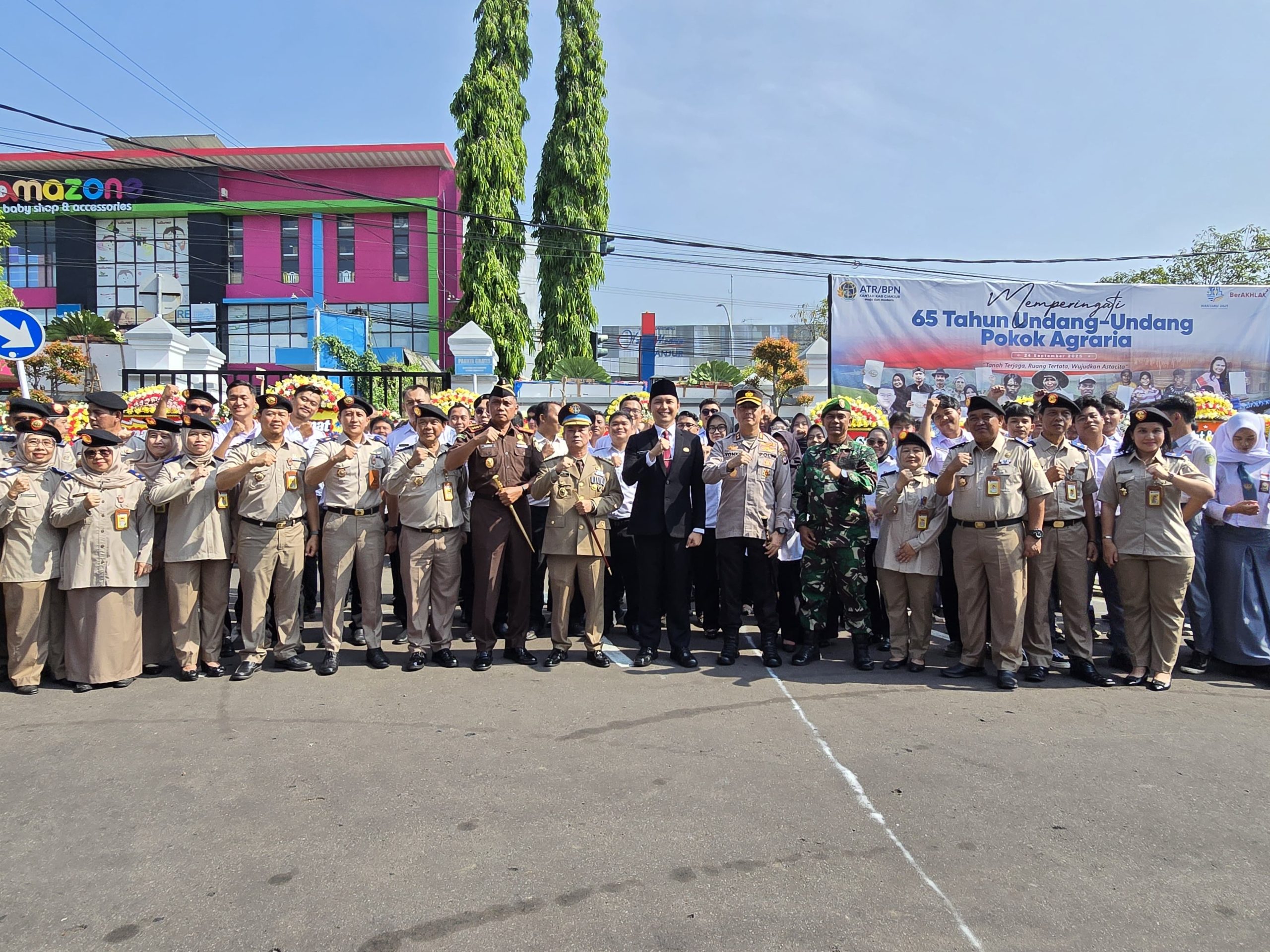Kapolres Cianjur AKBP Rohman Yonky Dilatha, S.I.K., M.Si., M.H. menghadiri undangan dari Bupati Cianjur dalam rangka peringatan Hari Tani ke-64 tingkat Kabupaten Cianjur yang diselenggarakan di Sub Terminal Agribisnis Desa Ciherang, Kecamatan Pacet serta di kawasan Perkebunan Teh Maleber, Desa Cipendawa, Kecamatan Pacet, Rabu (24/9/2025).Kabid Humas Polda Jabar Kombes Pol. Hendra Rochmawan S.I.K., M.H mengatakan bahwa Kegiatan peringatan Hari Tani ini dihadiri oleh jajaran Forkopimda Kabupaten Cianjur, unsur pemerintahan daerah, tokoh masyarakat, serta perwakilan kelompok tani. Rangkaian acara meliputi sambutan Bupati Cianjur, peninjauan hasil pertanian lokal, hingga kunjungan lapangan ke area perkebunan teh yang menjadi salah satu komoditas unggulan Cianjur.Dalam kesempatan tersebut, Kapolres Cianjur menyampaikan dukungan penuh Polri terhadap ketahanan pangan dan kesejahteraan petani. “Kami siap bersinergi dalam menjaga keamanan dan ketertiban masyarakat, khususnya di sektor pertanian yang merupakan salah satu pilar penting bagi perekonomian daerah,” ujar AKBP Rohman Yonky Dilatha.Acara berlangsung dengan khidmat dan penuh kebersamaan. Peringatan Hari Tani ke-64 ini diharapkan dapat menjadi momentum untuk meningkatkan produktivitas sekaligus mempererat sinergi antara pemerintah, aparat keamanan, dan masyarakat dalam mewujudkan kemandirian pangan serta kesejahteraan petani di Kabupaten Cianjur.(Lia/Humas Polda Jabar)