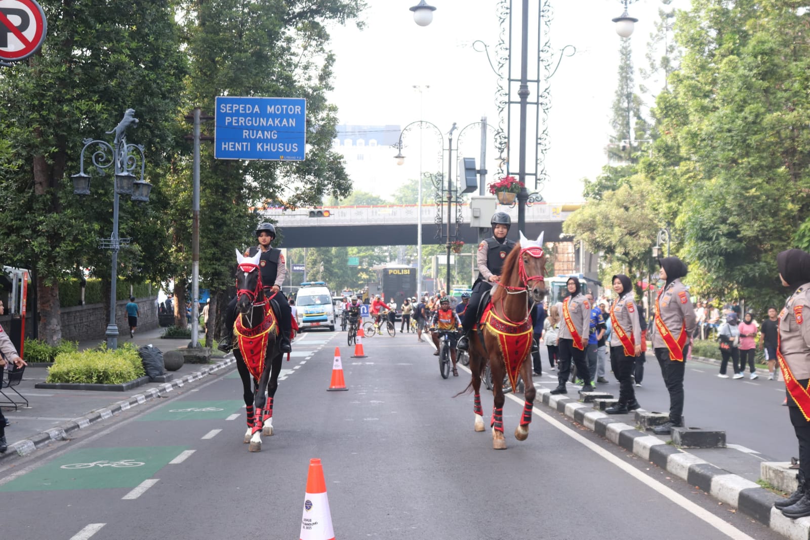 Di bawah hangatnya matahari pagi, suasana Car Free Day di Dago Cikapayang Bandung tampak semarak. Warga berolahraga, berinteraksi, dan bersantai menikmati udara segar. Namun, ada pemandangan istimewa yang menarik perhatian, deretan Polwan (Polisi Wanita) berseragam tampak berbaur dengan masyarakat, membawa semangat baru dalam kegiatan bertajuk “He For She”.Kabid Humas Polda Jabar Kombes Pol. Hendra Rochmawan S.I.K., M.H mengatakan bahwa Kegiatan yang berlangsung pada Minggu, 19 Oktober 2025, ini diikuti oleh jajaran Ditlantas Polda Jabar bersama Satlantas Polrestabes Bandung serta bersinergi dengan Unit Polsatwa Dit Samapta, Dit Pam Obvit serta Bid Dokkes Polda Jabar yang menghadirkan daya tarik tersendiri di tengah masyarakat.Polwan Ditlantas Polda Jabar tampil berpatroli menggunakan motor besar (moge) Penampilan tegas namun tetap elegan para Polwan di atas motor besar ini mendapat banyak apresiasi dari masyarakat, terutama kaum muda yang melihat sisi profesional sekaligus inspiratif dari figur Polwan masa kini.Sementara itu, di ruas jalan utama yang ramai, Polwan roller blade meluncur dengan lincah sambil menyapa warga. Dengan senyum ramah, mereka tidak hanya menjaga ketertiban, tetapi juga menularkan semangat positif dan rasa aman kepada masyarakat.”Menambah daya tarik kegiatan, Polwan Samapta dari Unit Polsatwa Dit Samapta juga turut beraksi dengan melaksanakan patroli berkuda. Kehadiran kuda patroli ini menjadi perhatian banyak pengunjung, terutama anak-anak yang tampak antusias berinteraksi dan berfoto bersama. Selain menjaga keamanan, patroli berkuda juga menjadi sarana efektif untuk mendekatkan Polri dengan masyarakat melalui pendekatan yang ramah dan komunikatif.” ujar Hendra.Tak berhenti di situ, Polwan juga menggelar kegiatan edukasi keselamatan berlalu lintas dengan cara yang unik mereka membagikan boneka lalu lintas kepada anak-anak sebagai simbol pentingnya memahami aturan sejak dini. Aksi sederhana ini bukan hanya menghadirkan keceriaan, tetapi juga menanamkan nilai disiplin dan keselamatan dengan cara yang menyenangkan.Di sisi lain, tenda layanan pemeriksaan kesehatan gratis oleh Polwan Biddokkes Polda Jabar dipadati masyarakat yang ingin mengecek kesehatan mereka. Sementara itu, mobil layanan Samsat Keliling (Samling) dan SIM Keliling (Simling) juga disiapkan untuk mempermudah warga memperpanjang SIM dan membayar pajak kendaraan meski di hari libur.Melengkapi kegiatan, program “Polantas Menyapa” menghadirkan dialog ringan antara Polwan dan masyarakat. Mereka berbagi pesan tentang keselamatan, ketertiban, dan pentingnya menjaga keamanan bersama — semua dilakukan dengan nada persuasif, bersahabat, dan penuh empati.Kegiatan “He For She” menjadi simbol nyata transformasi Polri menuju institusi yang lebih humanis, inklusif, dan empatik. Melalui peran aktif Polwan, Ditlantas Polda Jabar menunjukkan bahwa ketegasan dalam bertugas dapat berjalan seiring dengan kelembutan dan kepedulian terhadap sesama.Pakor Polwan Polda Jabar AKBP Wiwik Indrawati S.SI., APT, MMRS menyampaikan bahwa kegiatan ini tidak hanya menjadi ajang pelayanan, tetapi juga sarana membangun hubungan emosional antara Polri dan masyarakat.“Polwan bukan sekadar simbol kedisiplinan, tetapi juga representasi wajah Polri yang penuh empati. Melalui kegiatan ini, kami ingin menunjukkan bahwa pelayanan terbaik selalu dimulai dari hati,” ujarnya.Seluruh rangkaian kegiatan “He For She” berhasil menciptakan suasana yang hangat dan penuh kebersamaan.