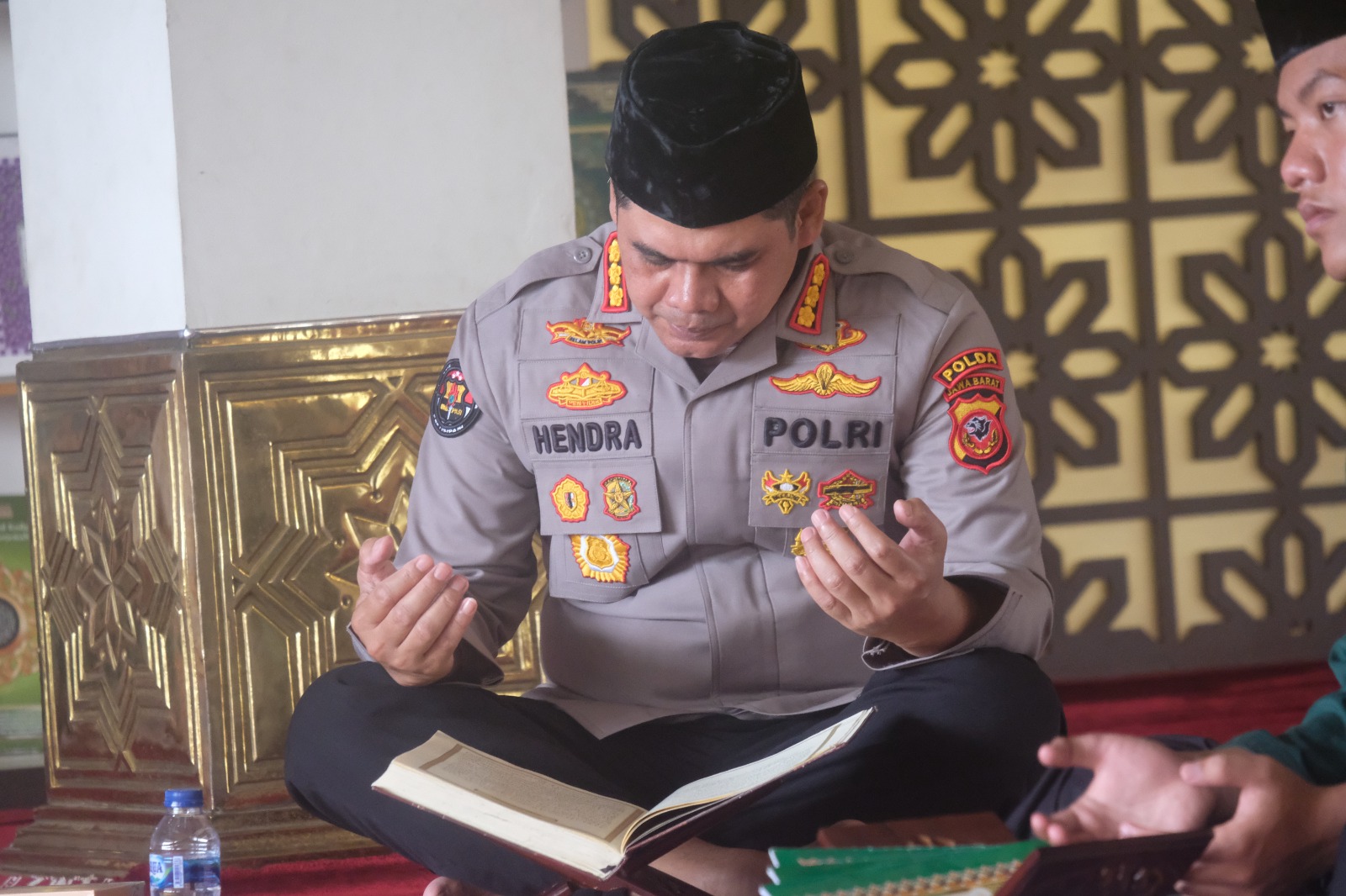Dalam rangka memperingati Hari Ulang Tahun Humas Polri ke-74, Bidang Hubungan Masyarakat (Bidhumas) Polda Jawa Barat melaksanakan kegiatan keagamaan yang sarat makna spiritual dan kebersamaan.Rangkaian kegiatan tersebut meliputi Shalat Dhuha berjamaah, Khataman Al-Qur’an, pembacaan Shalawat Nariyah, serta doa bersama dengan para santri dari Yayasan Pondok Pesantren Ulul Albab Kota Bandung, yang digelar di Aula masjid Polda Jabar, Jumat (24/10/2025).Kegiatan ini diikuti oleh seluruh personel Bid Humas Polda Jabar, perwakilan Satker bersama para santri yang berlangsung penuh khidmat dan kebersamaan. Acara diawali dengan pelaksanaan shalat dhuha berjamaah, dilanjutkan dengan khataman Al-Qur’an dan pembacaan shalawat nariyah sebagai ungkapan rasa syukur atas usia Humas Polri yang ke-74.Kabid Humas Polda Jabar Kombes Pol Hendra Rochmawan S.I.K., M.H dalam sambutannya menyampaikan bahwa kegiatan ini merupakan bagian dari wujud rasa syukur sekaligus sarana mempererat hubungan antara Polri dan masyarakat, khususnya kalangan pesantren.“Melalui kegiatan ini, kami ingin menanamkan semangat kebersamaan dan keimanan di lingkungan Bid Humas Polda Jabar. Semoga Humas Polri semakin profesional, terpercaya, dan selalu hadir memberikan informasi yang menyejukkan bagi masyarakat,” ujar Kombes Pol Hendra(Lia/Humas Polda Jabar)