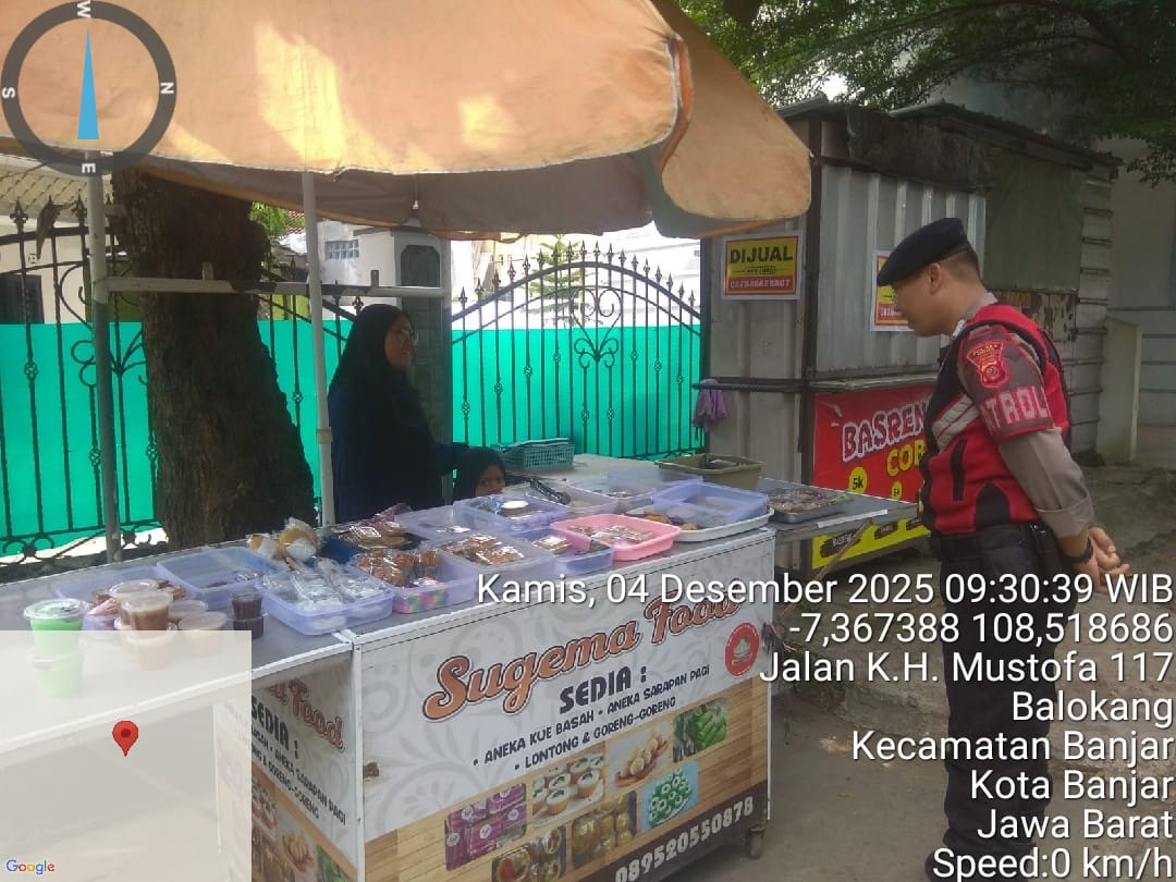 POLRES BANJAR – Satuan Samapta Polres Banjar melaksanakan kegiatan patroli dialogis pada Kamis (04/12/2025) sekitar pukul 09.00 WIB dengan menyasar sejumlah lokasi aktivitas pelaku UMKM dan area yang ramai dikunjungi warga. Kegiatan ini dilakukan sebagai langkah preventif guna menjaga keamanan dan ketertiban masyarakat di wilayah hukum Polres Banjar. Petugas menyusuri empat titik rute patroli, yaitu Jalan Gerilya, Hegarsari, Purwaharja, serta Jalan K.H. Mustofa.