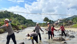 Di bawah terik matahari dan deru sungai yang deras, para personel bekerja bahu-membahu—mengangkat material, menyiapkan fondasi, memastikan kekokohan struktur, dan yang terpenting, menghadirkan kembali rasa aman bagi warga. Meski berada jauh dari keluarga di hari Minggu, semangat pengabdian tetap terpancar kuat.