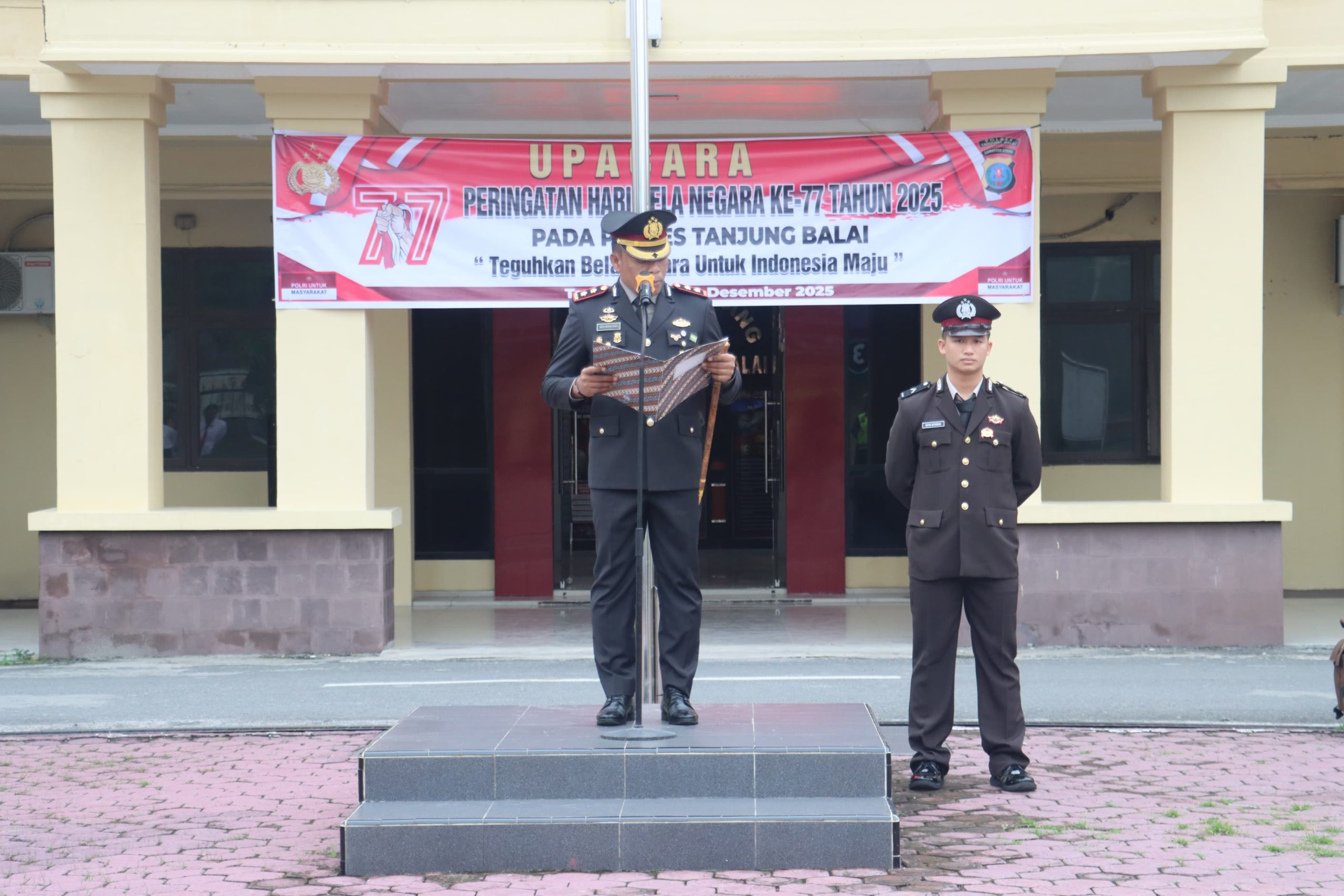 TANJUNGBALAI//Fakta reformasi.com – Polres Tanjung Balai menggelar upacara peringatan Hari Bela Negara ke-77 tahun 2025 dengan khidmat di halaman Mapolres Tanjung Balai, Jumat (19/12/2025) pagi.