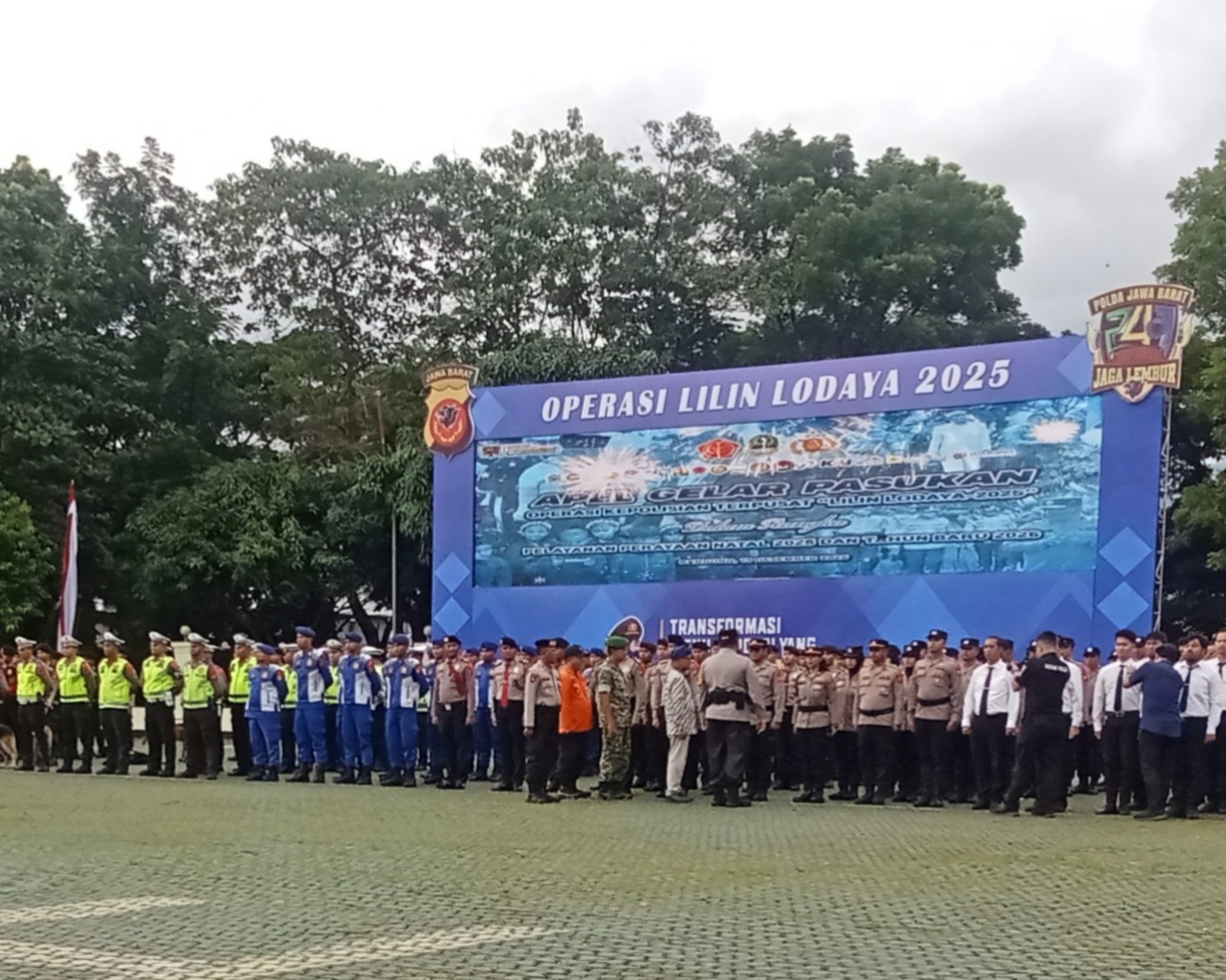 Bandung,- (Jumat 19/12/2025) Polda Jabar Gelar Pasukan Jelang Natal Dan Tahun Baru 2025 Ribuan personel gabungan dari Polri, TNI, dan instansi terkait tampak berbaris rapi dalam Apel Gelar Pasukan Operasi Lilin Lodaya 2025. Dihalaman Mapolda Jabar.