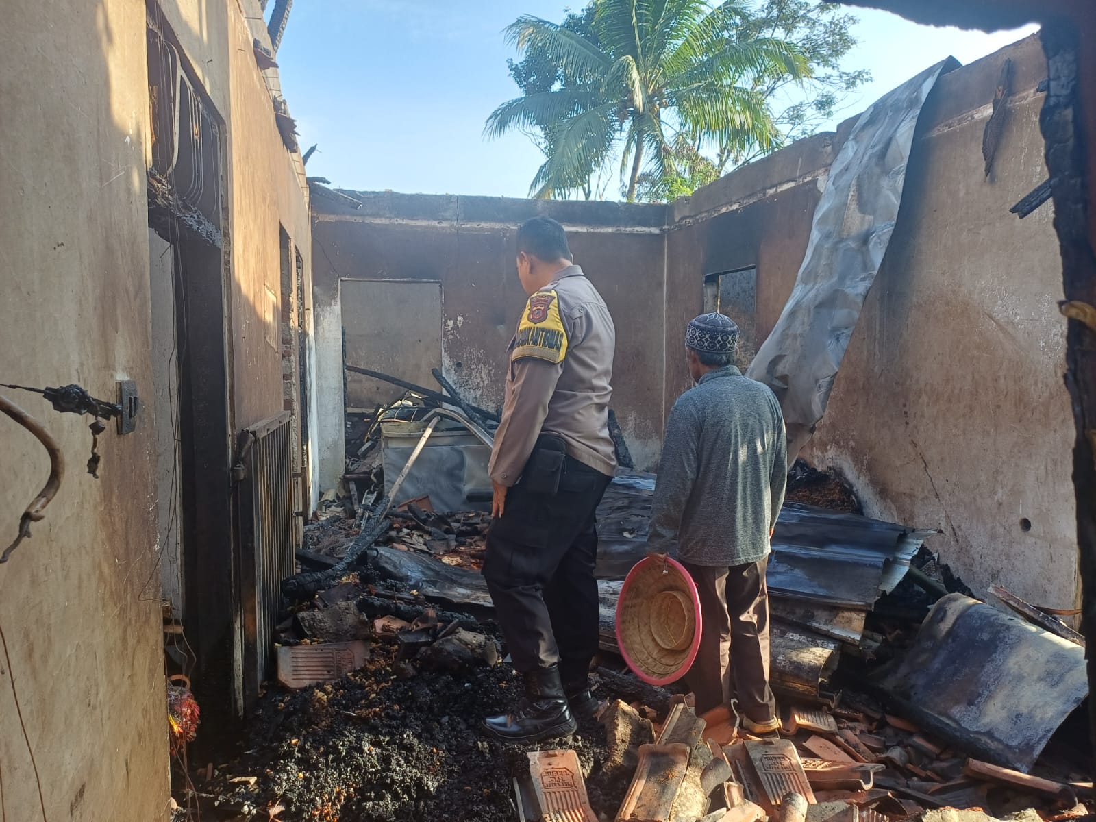 Personel Polsek Ciamis Polres Ciamis Polda Jawa Barat mendatangi lokasi kejadian kebakaran sebuah rjmah warga di wilayah Desa Gunungsari. Lokasi kebakaran ini berada di Dusun cikatomas RT 11 RW 03, Desa Gunungsari, Kecamatan Sadananya, Kabupaten Ciamis, Jawa Barat, Selasa (6/1/2026) dini hari.