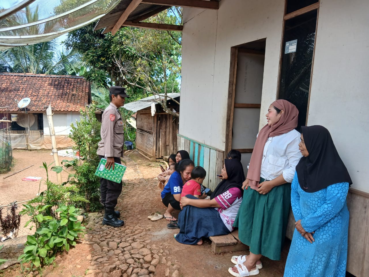 Petugas yang melaksanakan cek TKP dengan didukung unsur terkait yang turut hadir di lokasi, di antaranya Babinsa Desa Purbayani, Satpol PP Kecamatan Caringin, Damkar serta para relawan.