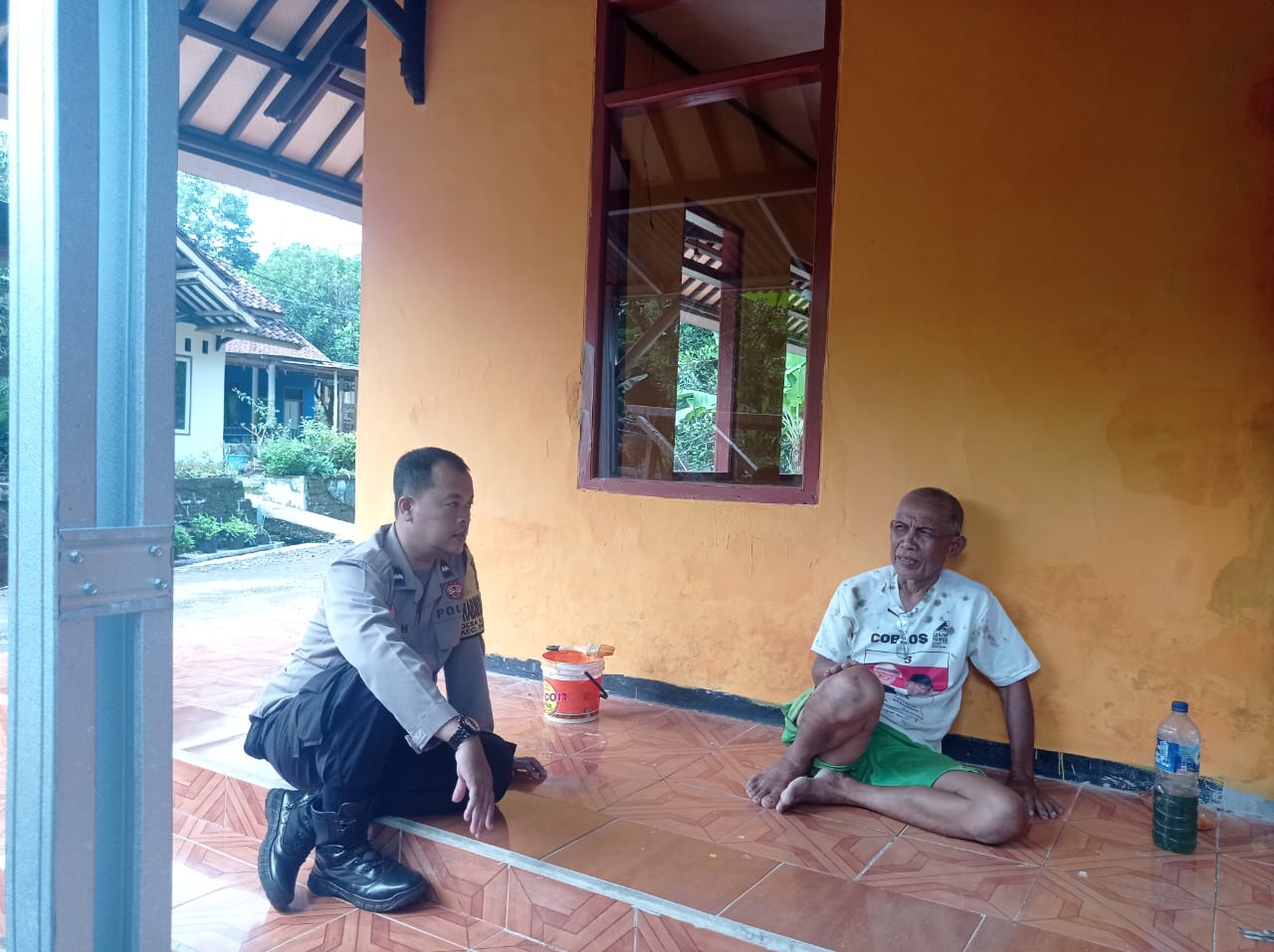 Dalam kegiatan tersebut, Aipda Ibnu Hasyim menyambangi salah seorang warga, Bapak Iman, untuk menjalin komunikasi dan mempererat hubungan kemitraan antara aparat dan masyarakat. Silaturahmi berlangsung dalam suasana akrab dan penuh kekeluargaan, mencerminkan kedekatan Bhabinkamtibmas dengan warga binaannya.