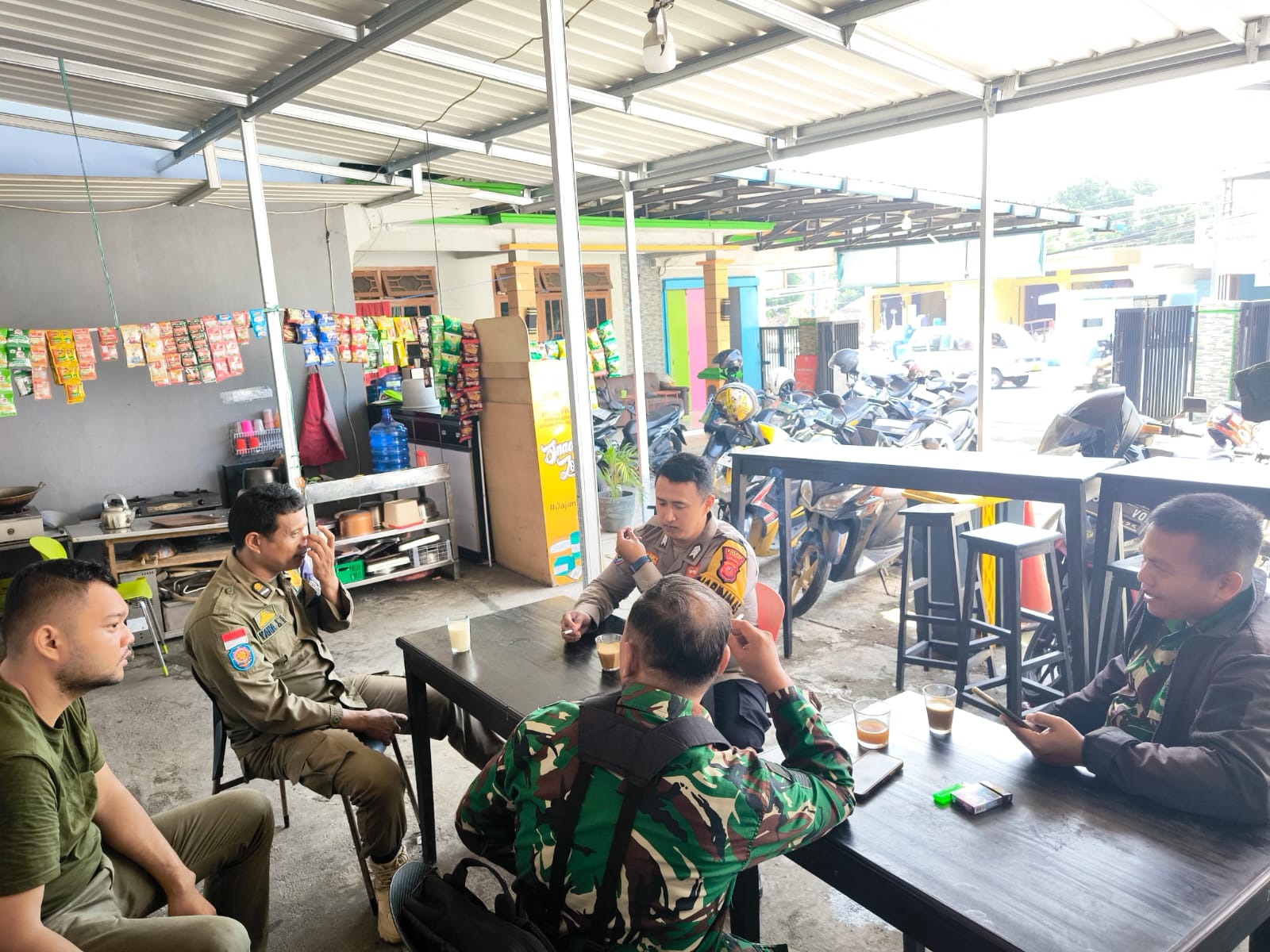 Kegiatan koordinasi tersebut berlangsung dalam suasana santai namun penuh makna, menjadi wadah komunikasi langsung antarpetugas untuk menyamakan persepsi, bertukar informasi, serta memetakan situasi dan dinamika kamtibmas di wilayah Purwaharja. Diskusi berjalan terbuka dengan menitikberatkan pada langkah-langkah pencegahan gangguan keamanan sejak dini.