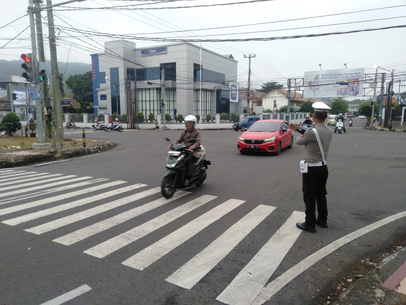 Personel Sat Lantas melaksanakan pengaturan arus lalu lintas di pos tetap seperti Simpang Tiga Jembatan Baru, Simpang Tiga Parungsari, Simpang Empat Alun-alun, Simpang Empat Sopoyono, dan Simpang Empat Garuda, serta pos tidak tetap di berbagai persimpangan strategis, sekolah, dan pusat aktivitas masyarakat.