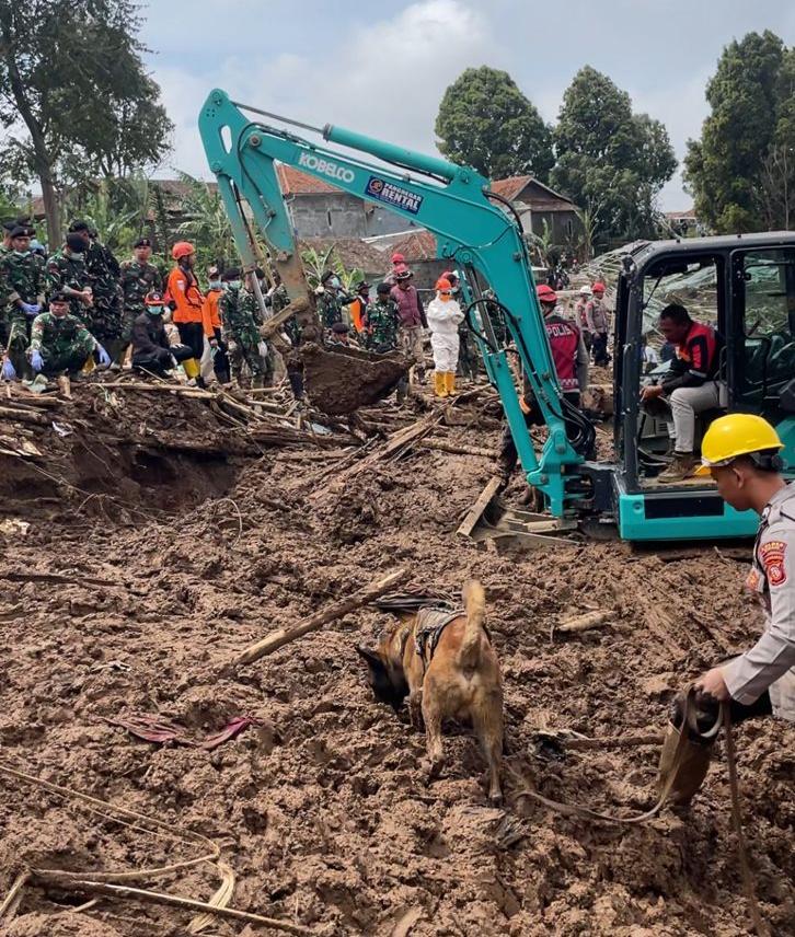 Tim K9 Polda Jabar dikerahkan untuk menyisir titik-titik rawan dan area yang diduga masih terdapat korban tertimbun material longsoran. Kehadiran anjing pelacak ini diharapkan dapat mempercepat proses pencarian di tengah kondisi medan yang sulit dan tertutup lumpur serta reruntuhan.