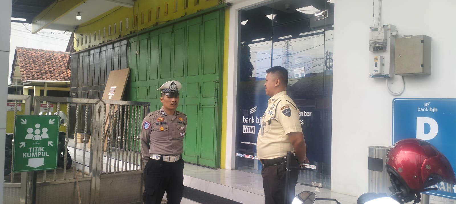 Banjar – Unit Lalu Lintas Polsek Pataruman Polres Banjar melaksanakan kegiatan Polantas Menyapa dengan menyasar satpam Bank bjb yang bertugas di sepanjang Jalan Raya Banjar–Pangandaran, Kota Banjar, Rabu (28/1/2026). Kegiatan ini dilakukan sebagai bentuk pendekatan humanis Polri kepada petugas pengamanan perbankan yang memiliki peran penting dalam menjaga keamanan dan kelancaran aktivitas masyarakat.