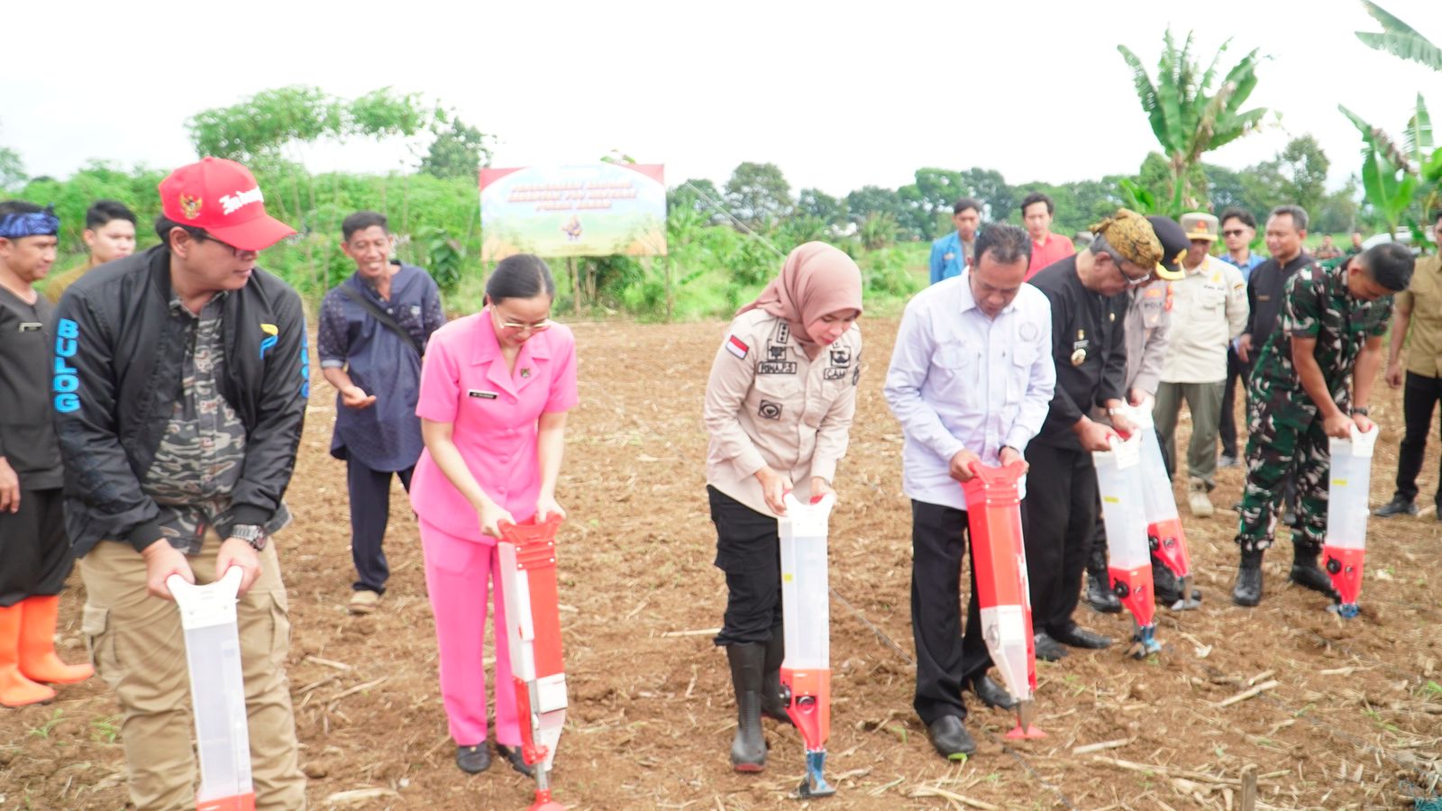 Lahan seluas 2000 m² milik Sdr. Suroto yang sebelumnya jarang digarap kini berubah menjadi pusat aksi nyata ketahanan pangan. Bibit jagung hibrida ditanam secara simbolis, sementara warga dan aparat bahu-membahu menabur benih, menunjukkan semangat kebersamaan yang tinggi.