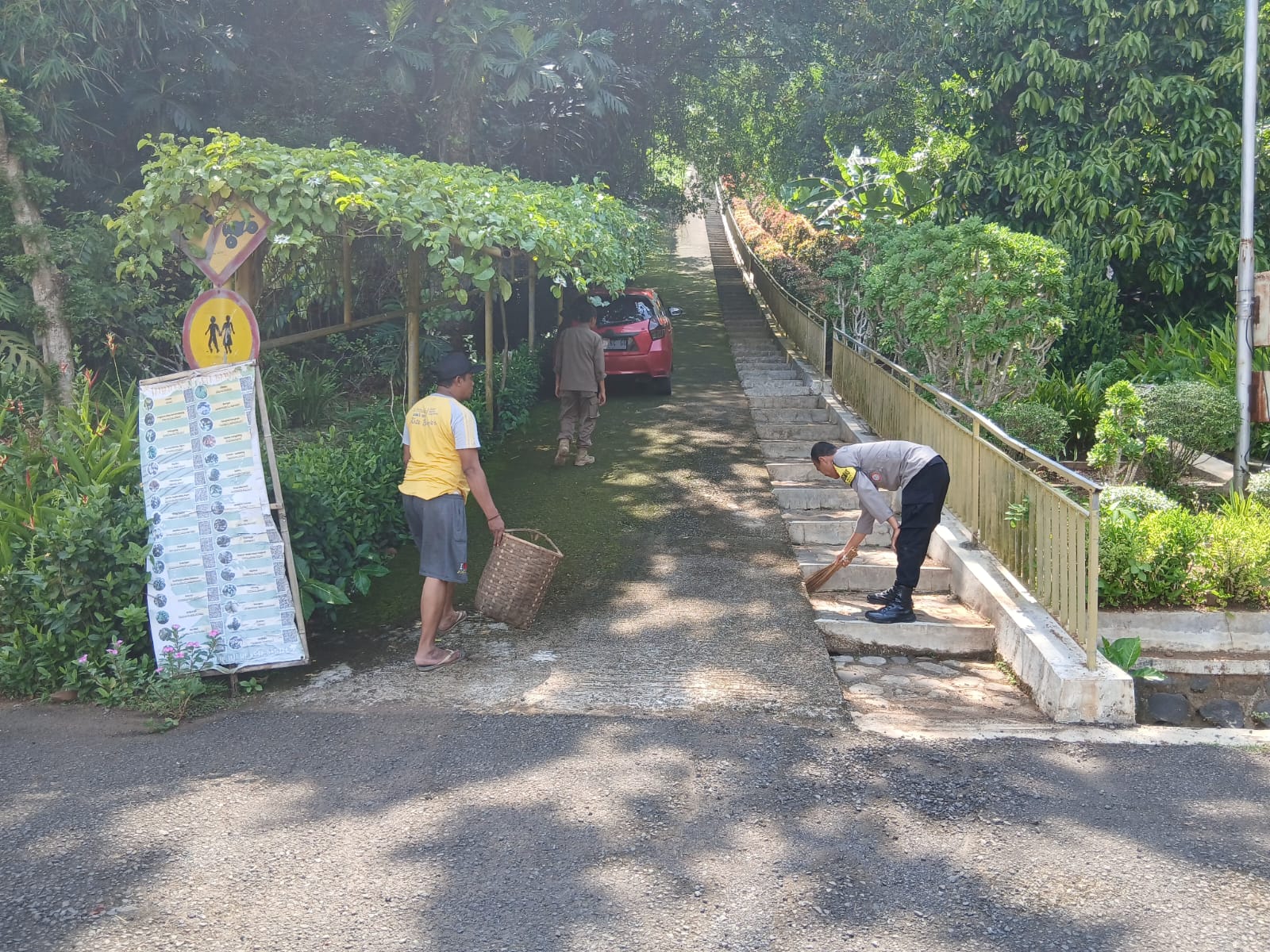Kegiatan tersebut berlangsung di Lingkungan Sukamanah RT 04 RW 17, Kelurahan Pataruman, Kecamatan Pataruman, Kota Banjar. Aipda Ari Aminudin bersama unsur bina desa serta salah satu warga setempat, Hendi, bergotong royong membersihkan dan merawat area Taman Kehati sebagai bagian dari upaya menjaga kebersihan dan kenyamanan kawasan wisata lingkungan.