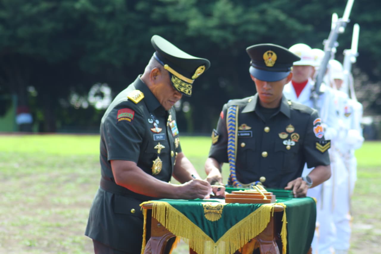 Lembang. Komandan Kodiklatad Letjen TNI Mohamad Hasan yang diwakili Direktur Pendidikan (Dirdik) Kodiklatad Brigjen TNI Tarunajaya, S.I.P., M.M., menghadiri Upacara Penutupan Pendidikan Pertama Tamtama (Dikmata) Kesehatan TNI AD Gelombang III TA 2025 yang dipimpin oleh Wakil Kepala Staf Angkatan Darat (Wakasad) Letjen TNI Muhammad Saleh Mustafa bertempat di Lapangan Upacara Pusdikajen Ditajenad, Rabu (4/2/2026).