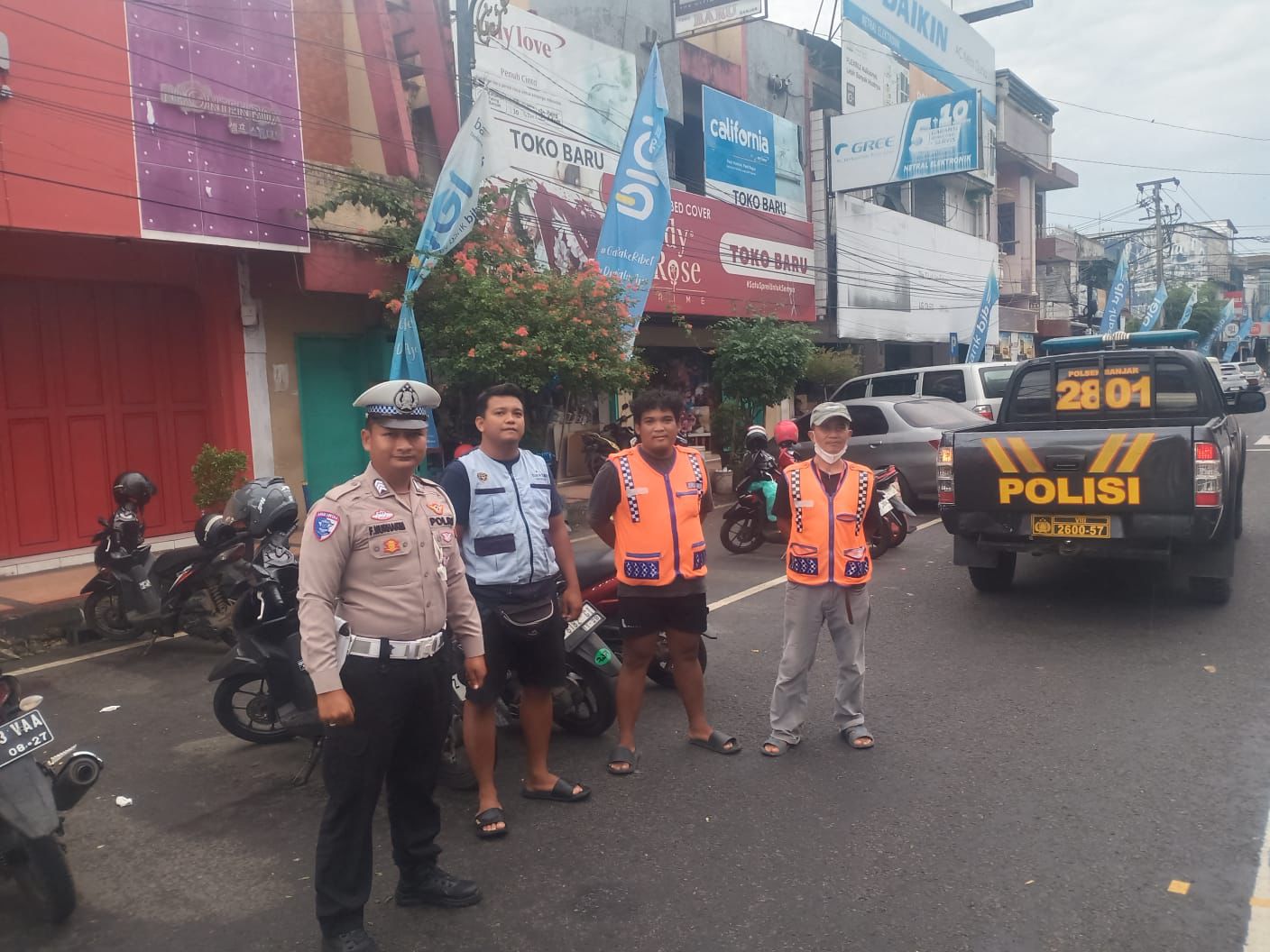 Personel yang terdiri dari Panit Lantas dan anggota Lantas dibantu Sabhara diterjunkan langsung untuk mengurai kepadatan kendaraan. Petugas tampak sigap membantu penyeberangan pejalan kaki, mengatur parkir agar tidak memakan badan jalan, serta memastikan arus tetap mengalir tanpa hambatan berarti.