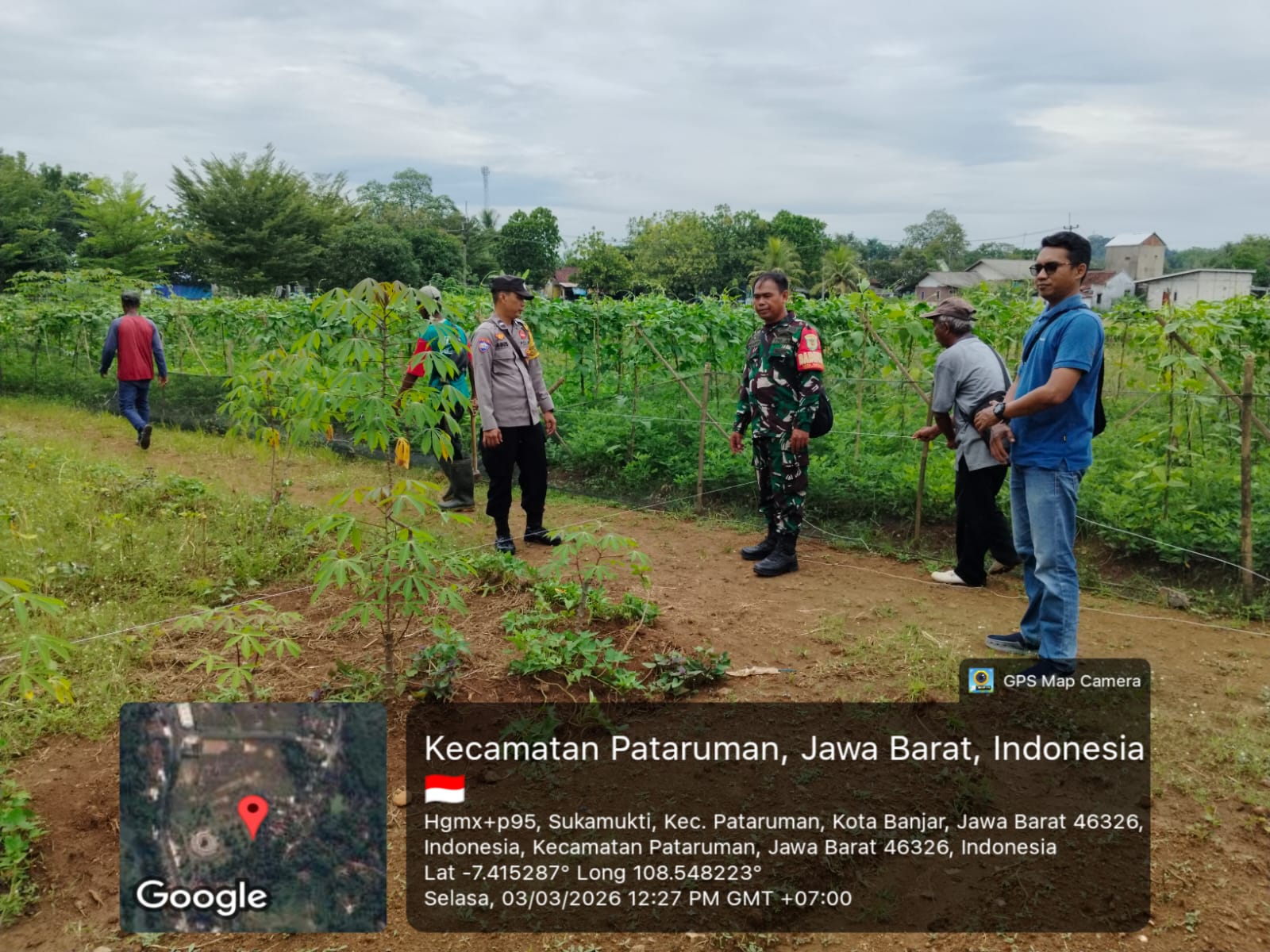 Banjar – Bhabinkamtibmas Desa Sukamukti Polsek Pataruman Polres Banjar bersama Babinsa melaksanakan kegiatan sambang dan monitoring pemasangan boplang proyek pembangunan Kantor Koperasi Desa Merah Putih (KDMP), Rabu (4/3/2026) pukul 12.00 WIB hingga selesai. Kegiatan berlangsung di area Taman Tugu Perbatasan Kota Banjar, Dusun Sukamulya RT 03 RW 01, Desa Sukamukti, Kecamatan Pataruman, Kota Banjar.