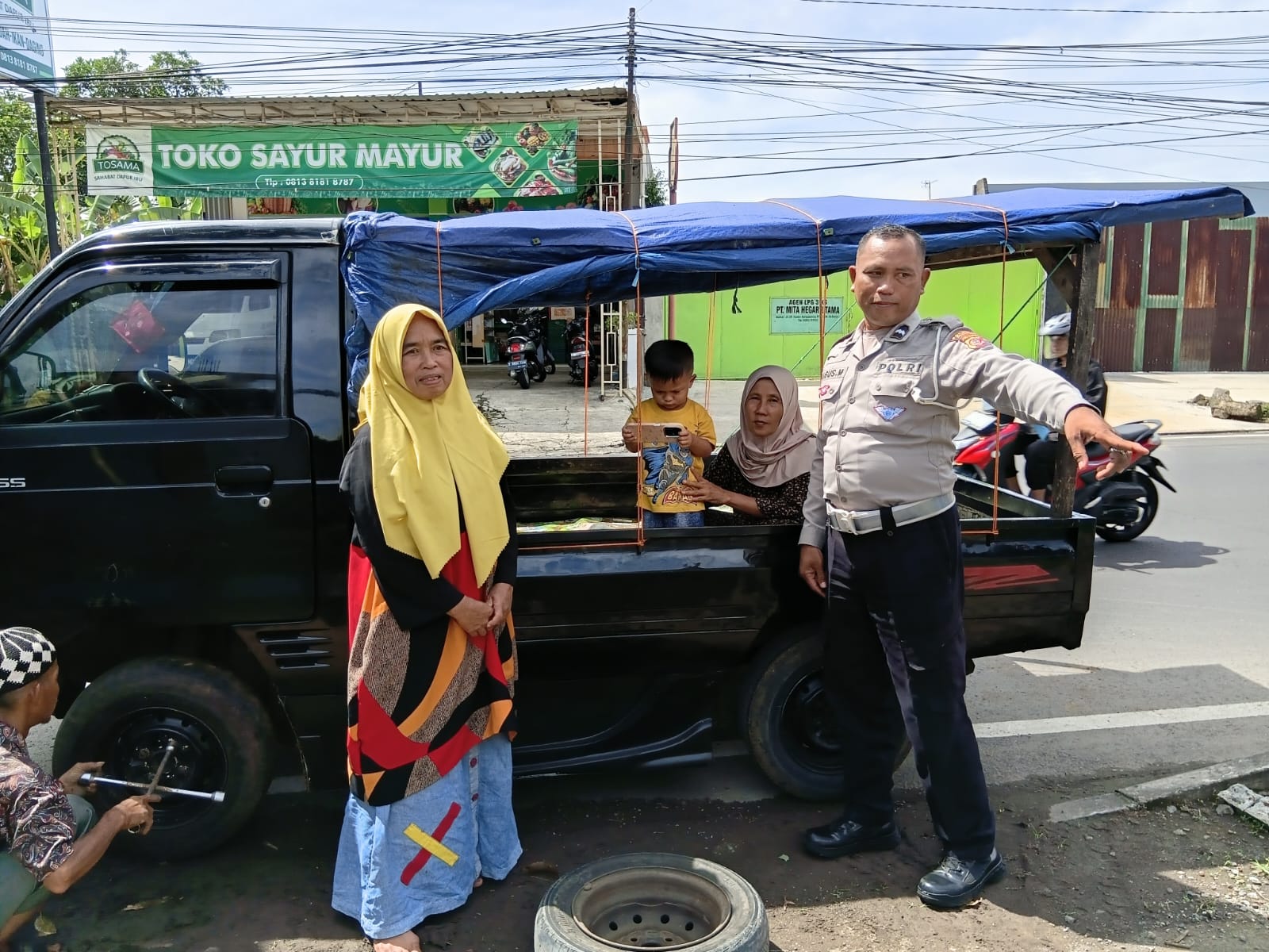 Saat patroli dan sambang, petugas mendapati sebuah mobil pick-up mengalami bocor ban di tengah jalan. Panit 1 dan Panit 2 Lantas Polsek Banjar bersama anggota langsung membantu pengendara mengganti ban, memastikan kendaraan aman untuk melanjutkan perjalanan. Aksi cepat ini mendapat apresiasi warga sekitar yang menyaksikan pelayanan Polri secara langsung di lapangan.
