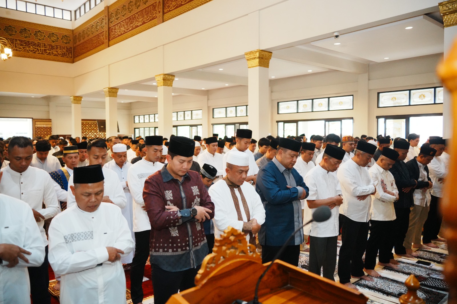 Suasana penuh khidmat dan kebersamaan menyelimuti pelaksanaan Sholat Idul Fitri 1447 H/2026 M yang digelar di Masjid Al-Amman Polda Jawa Barat, Sabtu (21/3/2026). Kegiatan tersebut dipimpin langsung oleh Kapolda Jabar Irjen Pol. Dr. Rudi Setiawan, S.I.K., S.H., M.H., serta diikuti oleh jajaran personel Polda Jabar dan masyarakat sekitar.