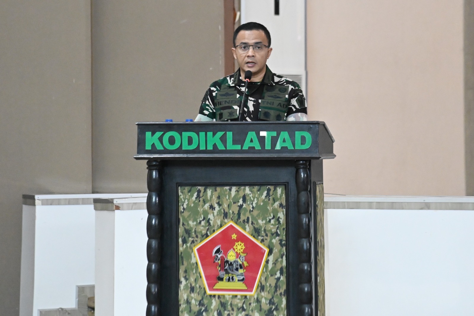 Bandung. Direktur Umum (Dirum) Kodiklatad Brigjen TNI Saiful Rizal, S.Sos., yang diwakili Pabanpers Sdirum Kodiklatad Kolonel Inf Hendi Ahmad Pribadi, S.I.P., M.I.P., M.Han., memimpin kegiatan penyuluhan hukum TA 2026 yang dilaksanakan di Aula M. Toha Kodiklatad, Selasa (8/4/2026).