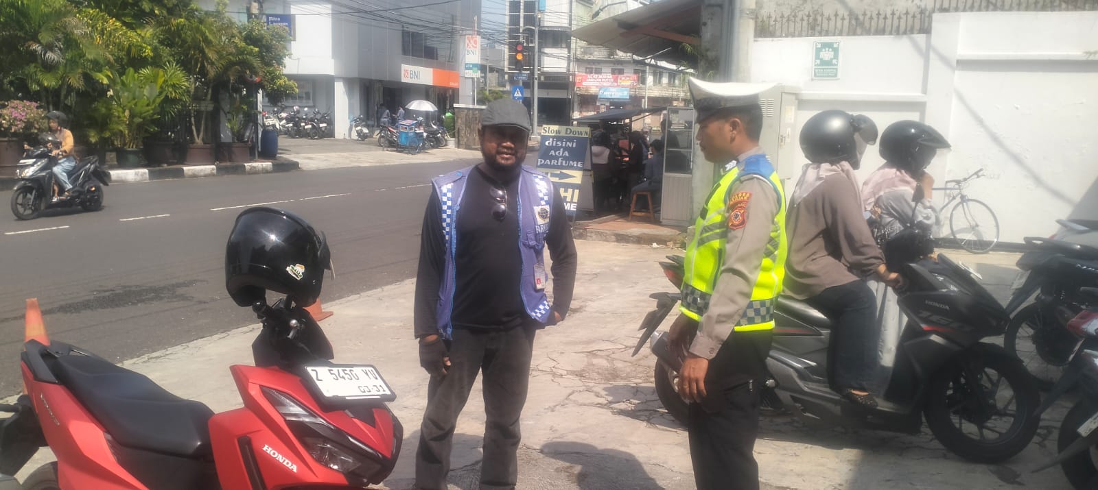 Kegiatan yang dimulai pukul 11.00 WIB tersebut menyasar langsung petugas parkir sebagai garda terdepan dalam pengaturan kendaraan di lingkungan perbankan. Dengan pendekatan humanis, personel memberikan pembinaan terkait tata cara pengaturan parkir yang baik dan tidak mengganggu arus lalu lintas.