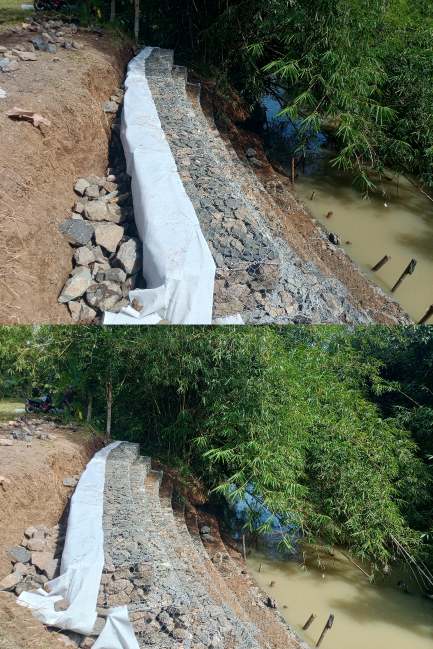 Pembangunan bronjong ini menjadi langkah nyata dalam memperkuat struktur tanah di tepi sungai yang selama ini rawan tergerus arus air, terutama saat musim hujan. Kondisi tersebut sebelumnya sempat menimbulkan kekhawatiran warga karena berpotensi menyebabkan longsor hingga mengancam lahan pertanian dan permukiman.