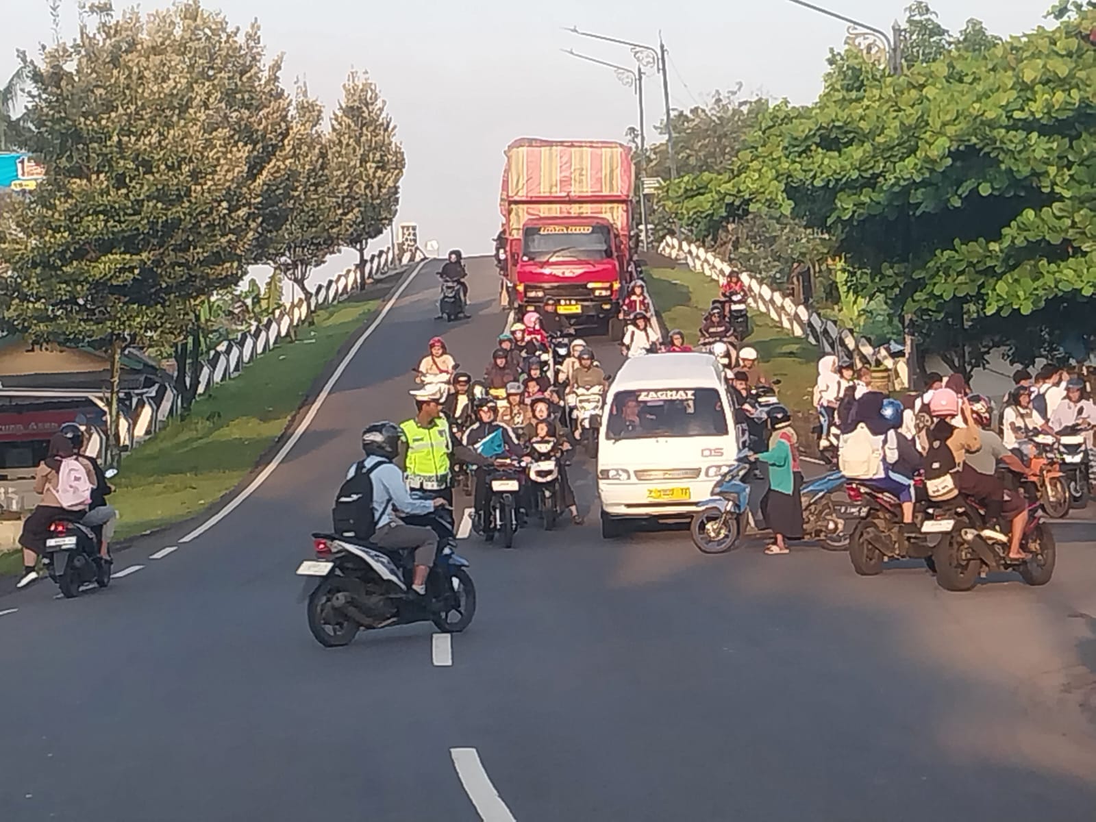 Di lapangan, petugas tak hanya mengurai kepadatan arus kendaraan. Mereka juga sigap membantu penyeberangan pelajar, mengatur ritme lalu lintas, serta menyampaikan imbauan keselamatan kepada pengguna jalan. Kehadiran polisi di jam sibuk ini menjadi solusi nyata atas potensi kemacetan dan kerawanan kecelakaan.