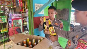 Personel Polsek Katapang melaksanakan kegiatan razia terhadap warung pinggir jalan yang diduga menjual minuman beralkohol tanpa izin di wilayah hukumnya, Sabtu (11/04/26).