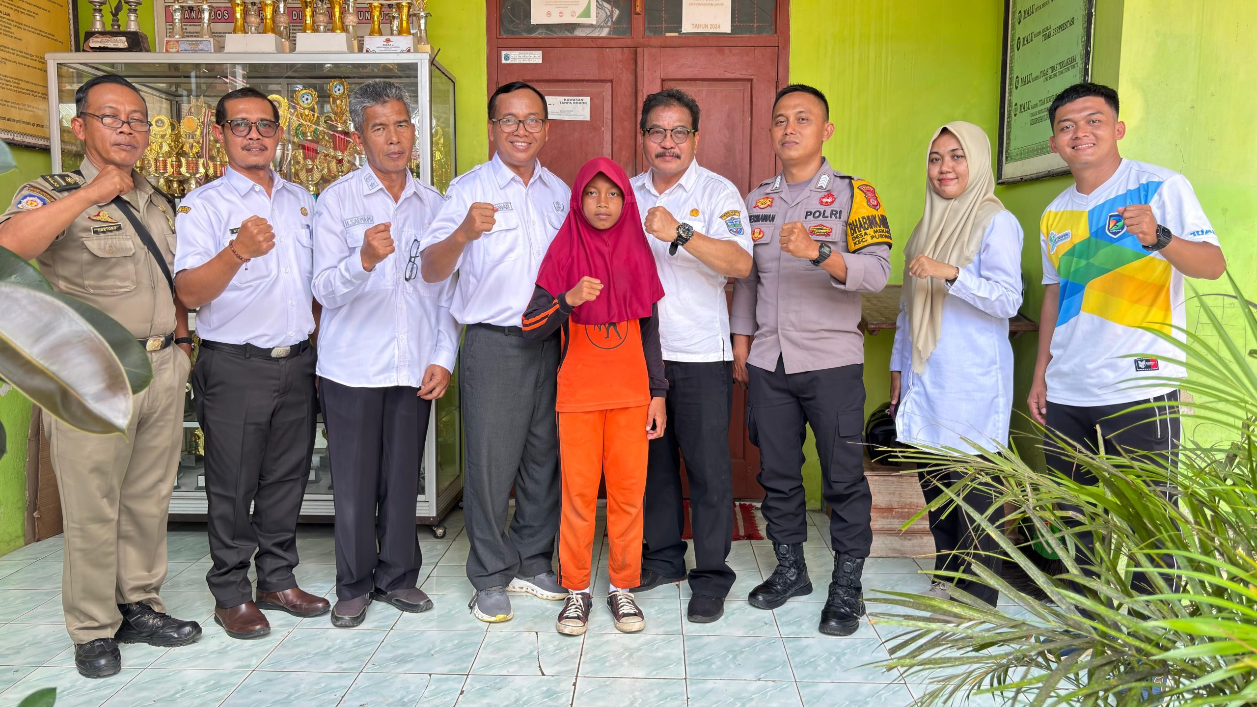 Bhabinkamtibmas Desa Mekarharja, Bripka Hermawan, turun langsung menyambangi Raisya di SDN 3 Mekarharja, Rabu (15/4/2026). Kunjungan tersebut bukan sekadar silaturahmi, tetapi juga bentuk apresiasi atas prestasi yang diraih di usia dini.