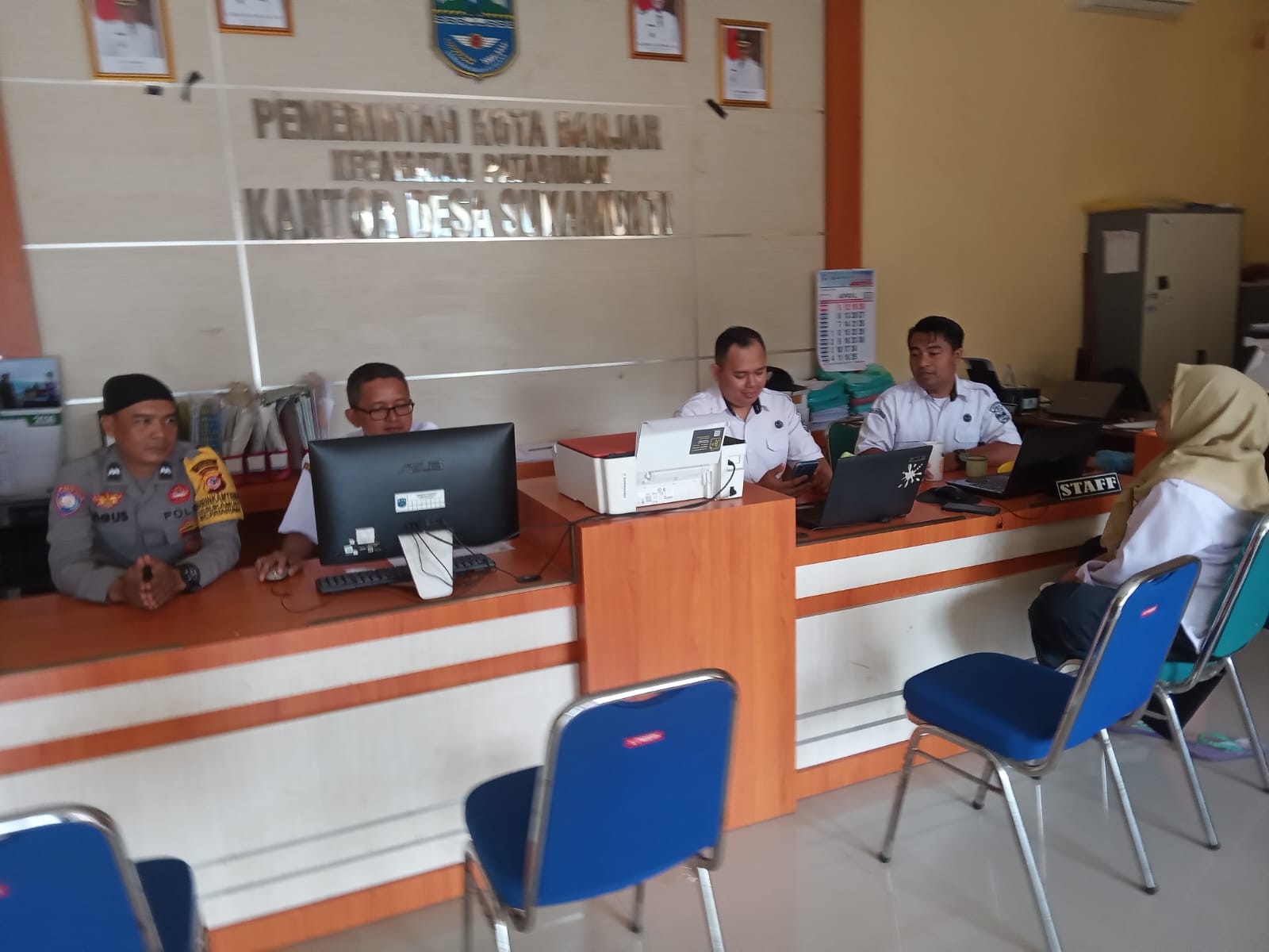 Banjar — Upaya memperkuat pelayanan publik berbasis kedekatan dengan masyarakat kembali ditunjukkan jajaran Bhabinkamtibmas di wilayah Kecamatan Pataruman. Kali ini, suasana pelayanan Desa Sukamukti menjadi ruang dialog hangat antara aparat kepolisian dan perangkat desa.