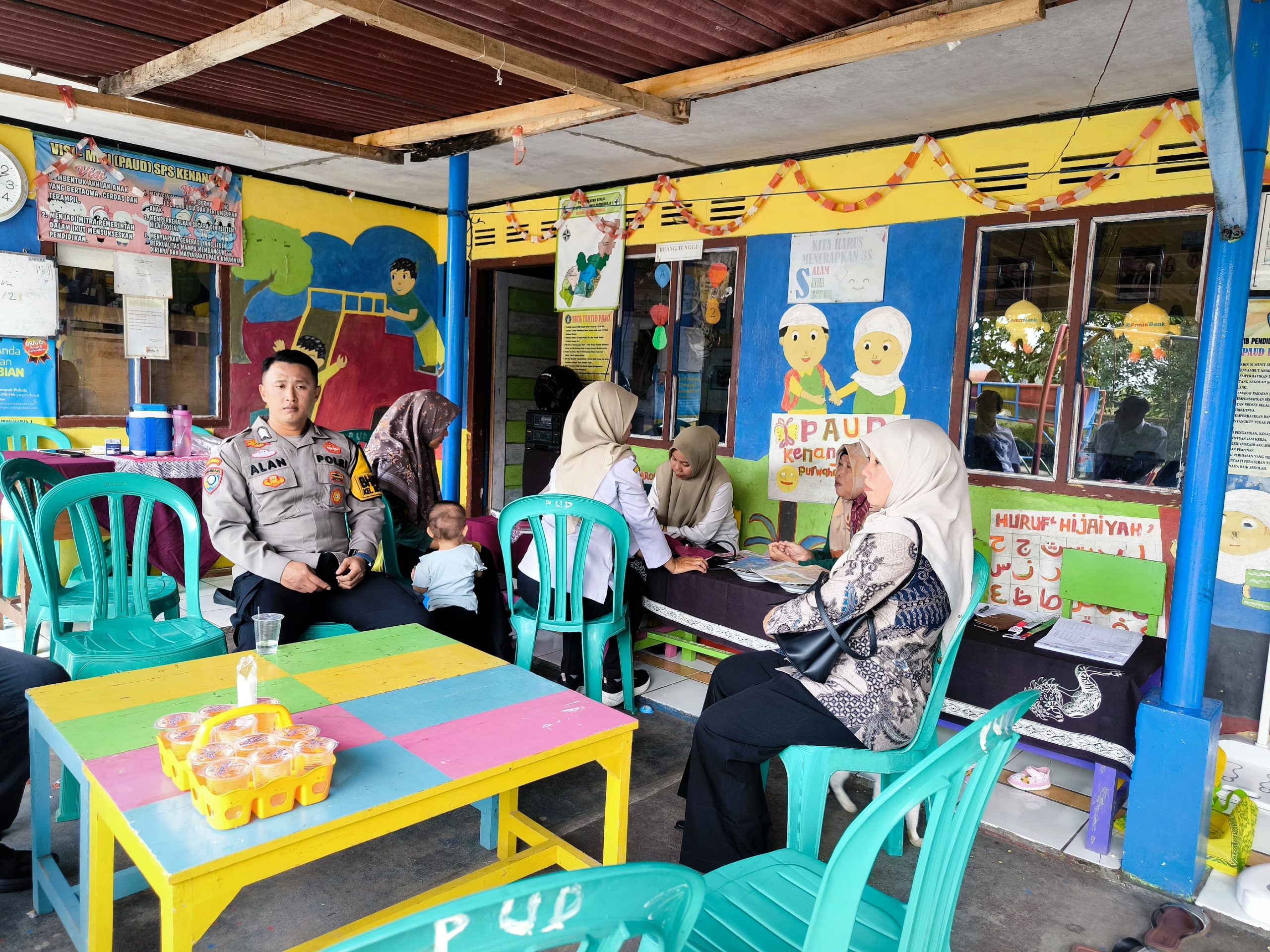 Bhabinkamtibmas Kelurahan Purwaharja, Brigpol Alan Suherlan, S.H., hadir bersama unsur Tripika dan perangkat kelurahan untuk memantau langsung jalannya kegiatan. Di tengah pelayanan posyandu, interaksi dengan warga berlangsung hangat, menciptakan suasana yang akrab dan terbuka.
