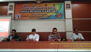 Cimanggung_Sumedang. Bertempat di Aula Desa Sukadana Kecamatan Cimanggung Kabupaten Sumedang, Bhabinkamtibmas desa Sukadana Polsek Cimanggung BRIPKA TRI WIDODO dan Babinsa Sertu ACHMAD NURSALAM telah menghadiri giat penyuluhan tentang desa bebas dari narkoba oleh narsum di desa Sukadana Kecamatan Cimanggung Kabupaten Sumedang. Rabu (04/12/2024). Hadir dalam kegiatan tersebut :- Danramil Cimanggung – Kapolsek Cimanggung – Kepala desa Sukadana – Bhabinkamtibmas desa Sukadana – Babinsa desa Sukadana – Aparatur pemerintahan desa Sukadana .- Remaja.desa sukadana.Adapun kegiatan di laksanakan guna memberikan penyuluhan tentang bahaya narkoba di desa Sukadana Kecamatan Cimanggung Kabupaten Sumedang.Bahwa kegiatan tersebut merupakan program yang di laksanakan pemerintahan desa Sukadana bersumber anggaran dana desa tahun 2024.Kegiatan berjalan dengan aman dan lancar.(Lia/Humas Polsek Cimanggung)