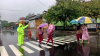 Petugas Polsek Purwaharja Sigap Atur Lalin di Tengah Rintik Gerimis