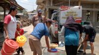 Bakti Sosial Polsek Kawalu, Gunakan Mobil Patroli Bagikan Air Untuk Warga Yang Terdampak Kekeringan.