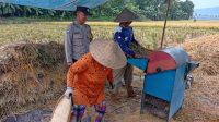 Tak Sekadar Patroli, Bhabinkamtibmas Polsek Pataruman Menyapa Petani Saat Panen di Sawah