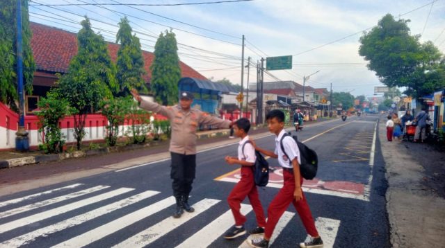 Polsek Purwaharja Giatkan Gatur Pagi, Ciptakan Arus Lalin Lancar dan Aman di Depan Sekolah