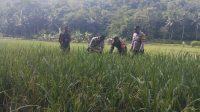Bhabinkamtibmas Desa Cibeureum Dampingi PPL Tangani Hama Weureung di Lahan Pesawahan Cibodas