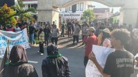 Personel Polres Banjar Laksanakan Pengaman Aksi Unjuk Rasa Yang Digelar Di Halaman Kantor DPRD Kota Banjar
