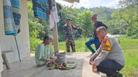 Bhabinkamtibmas Desa Jajawar Monitoring Giat pembagian Sembako di wilayah binaanya yang bertema “nyaah Kakolot”