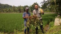 Bhabinkamtibmas Desa Jajawar sambang pada petani yang sedang memanen kacang tanah di Ladang